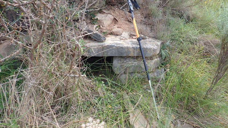 Durant la caminada, sovint amagats als vorals del camí i no sempre d’accés fàcil, anirem trobant diferents elements de patrimoni agrícola com ara barraques, antics forns, bancals, fonts, aljubs… que farà que haguem d’estar atents atents al gps si no ens en volem saltar cap. Com comentàvem, els accessos no són fàcils, i si no voleu acabar amb les cames esgarrapades, aconsellem de portar pantaló llarg tot i que sigui estiu.