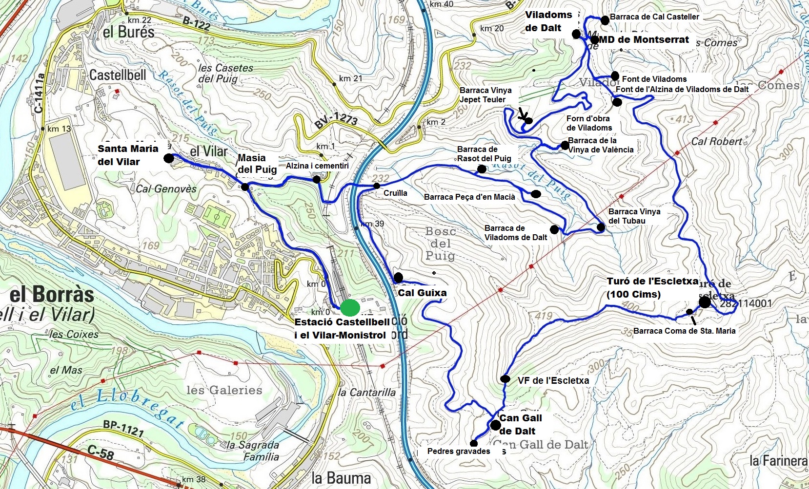 0 km 0h Estació de Castellbell i el Vilar-Monistrol de Montserrat (211 m) (gps 31T 405790 4609145)