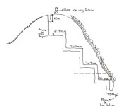 [Resclosa] Construcció de carreu i paredat, començada com a presa, però inacabada. La part començada que en resta te set metres de gruix. Túnel per al canal amb volta de canó i arc de mig punt, de noranta centímetres de diàmetre. Damunt, pas envolta perpendicularment al canal, en el sentit del mur de contenció, i un petit recinte de volta potser per als tallants de les rescloses.