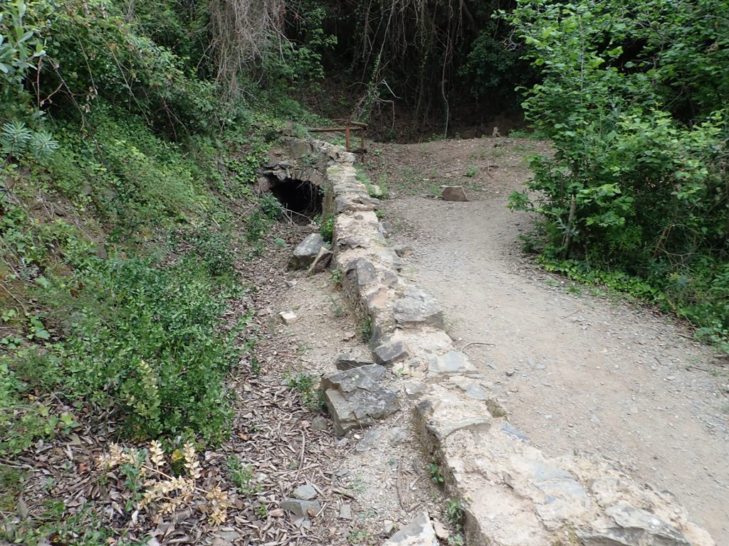 El sender segueix amb un tram una mica massa protegit de baranes per endinsar-se en les partides de l’Adoberia del Simó i la Tria. Entre camps d’oliveres i ametllers deixem enrere el Mas de Mates fins al Molí de Baiget, punt on té oficialment l’inici el Camí.