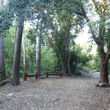 Envoltats de pins i avellaners, arribem a una petita esplanada amb bancs de fusta on un cartell ens indica que som al final del Camí del Rec. Fins aquí han arribat els treballs de recuperació d’aquest sender. Hi ha traces d’un corriol que segueixen la riera potser fins a les Tres Aigües, punt de naixement de la riera de la Selva. Ens hi vam endinsar una mica, però és difícil de seguir per la gran quantitat de vegetació que el cobreix. D’aquí toca desfer el quilòmetre i escaig recorregut fins arribar de nou a La Resclosa per continuar la travessa en direcció a La Selva del Camp.