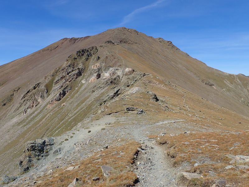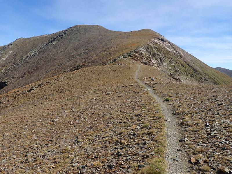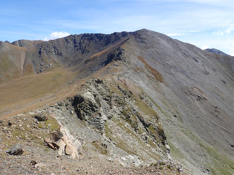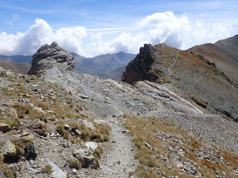 Un camí poc clar segueix la carena que baixa del cim i que connecta amb el camí normal en un coll sense nom (2.724 m) des d’on seguint l’evident camí que puja zigzaguejant ens portarà sense complicacions fins al pic de Finestrelles 2.826 m.