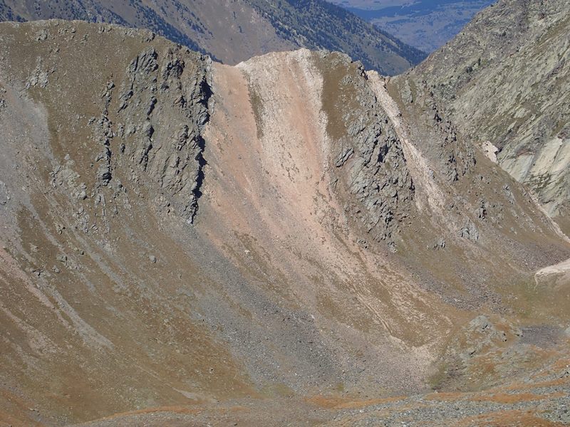 [Des del Noufonts] es pot observar el contacte entre els materials cambro-ordovicians i els gneis infrajacents en molt bones condicions d’aflorament degut a la manca de vegetació que hi ha en aquesta zona d’alta muntanya. Destaquen la presència d’abundants nivells de roques carbonàtiques (marbres i dolomies) suparal•lels o paral•lels al contacte, alguns d’ells situats just per damunt del contacte amb els gneis.