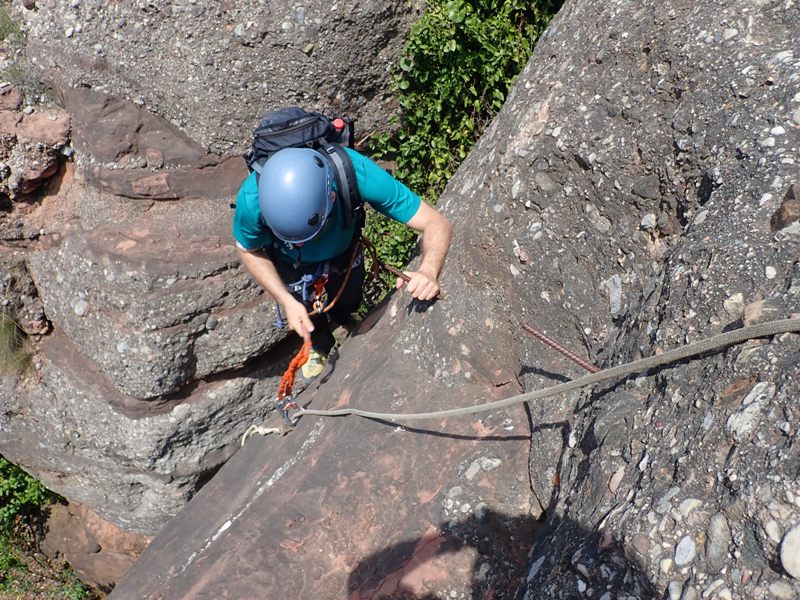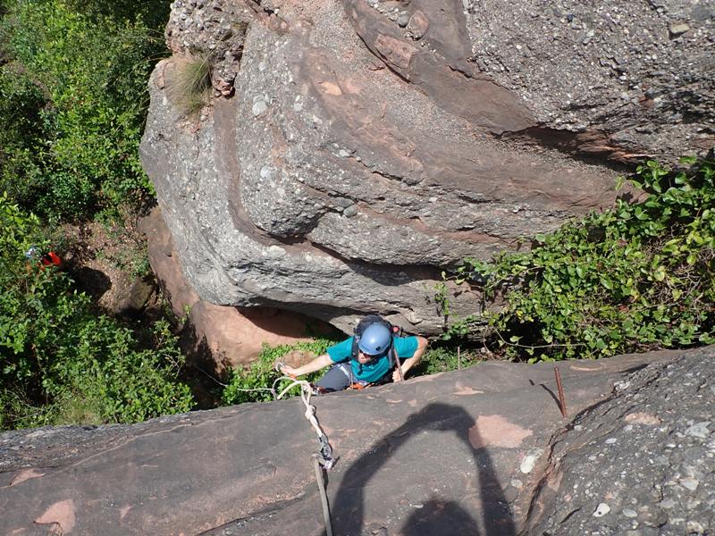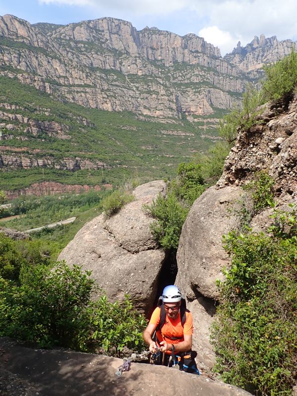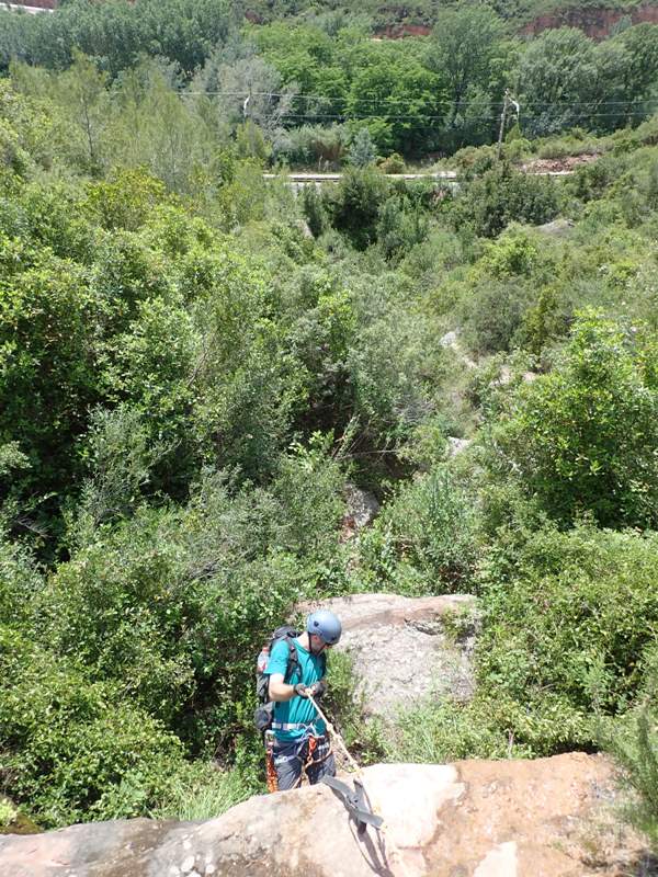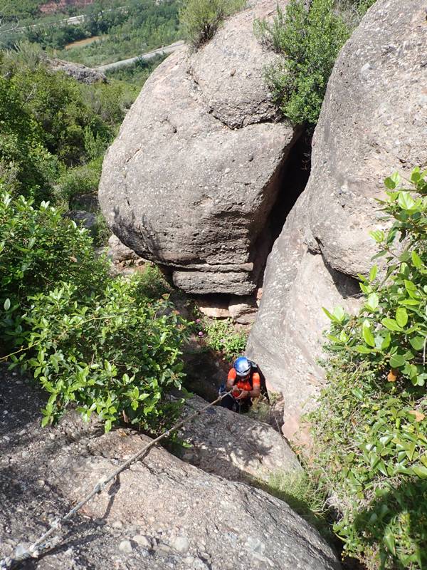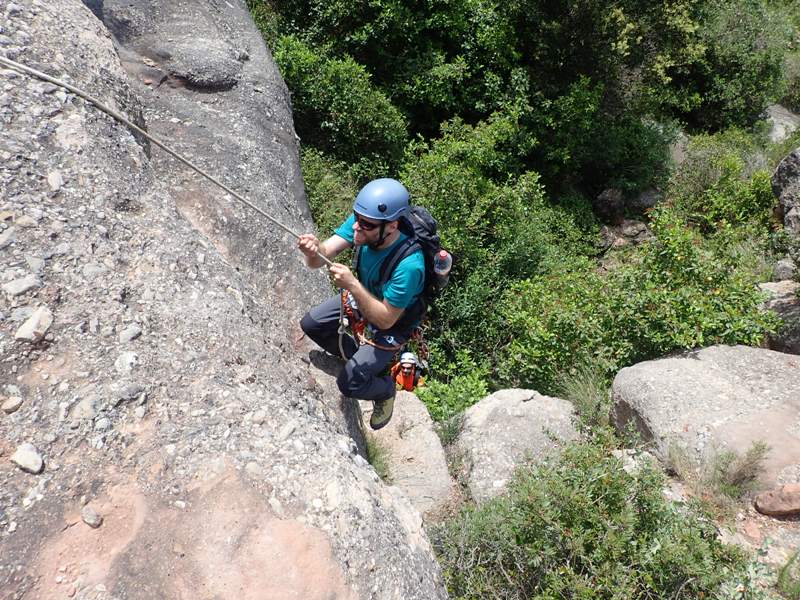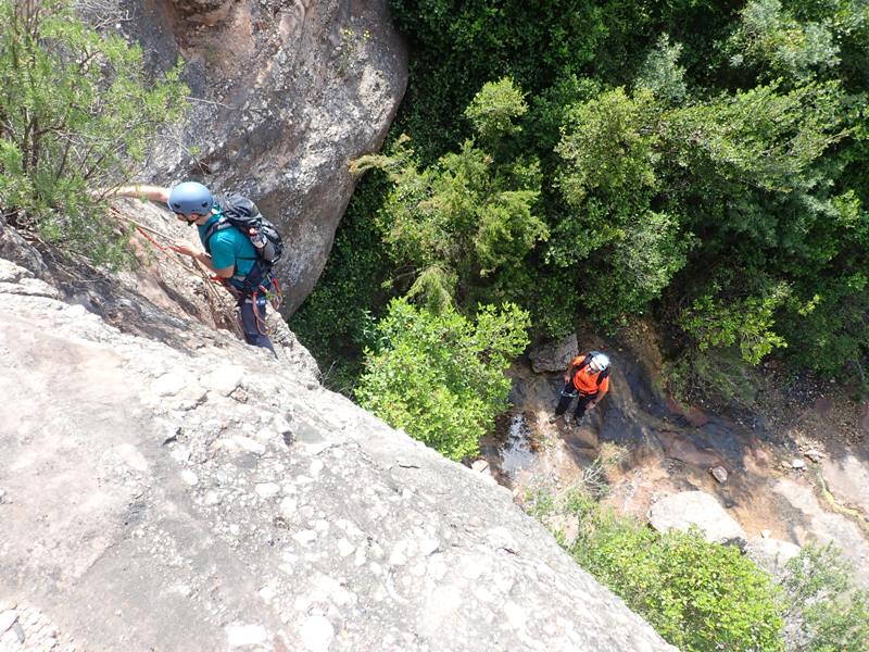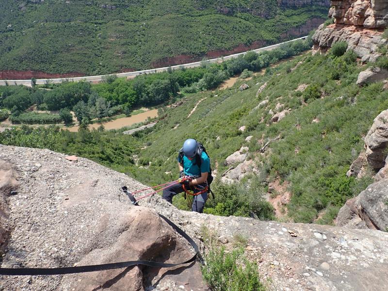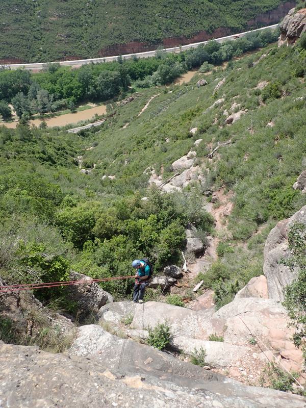 Crec que vam rapelar un parell de trams i la resta els vam desgrimpar ajudats de les cordes. Si hi ha valents o forts de braços, es poden plantejar de desgrimpar-la tota.