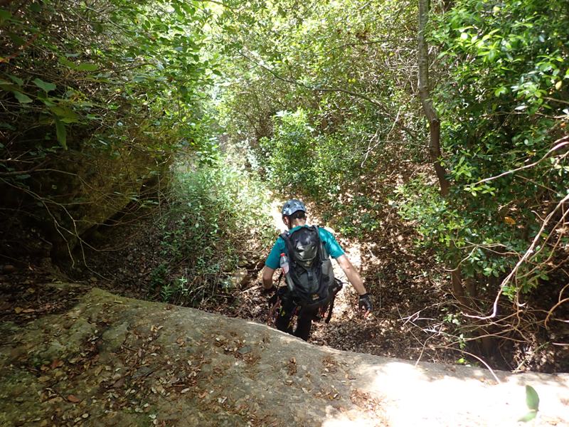 La canal comença amb un tram equipat amb corda que supera un pendent de terra poc consolidada. La dificultat la trobareu només quan el toll de la seva base té aigua. Poc després assolim un corriol que ens pot servir d’escapatòria. A l’esquerra el camí ens conduiria directament de nou a l’estació de tren.