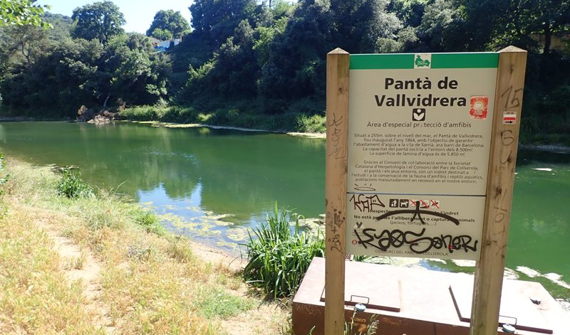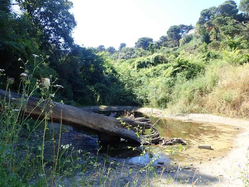A partir dels anys 60, però, l’abandonament va fer que la vegetació cobrís l’obra, al mateix temps que la presència de sediments van fer disminuir notablement la capacitat d’embassament. Entre el 2005 i el 2006 va ser reformat íntegrament per tal de preservar la fauna i la flora, ja que conté una població destacada d’amfibis, entre els quals destaca l’espècie de granota reineta (Hyla meridionalis), però també perquè les persones puguin gaudir de l’entorn natural del parc de la serra de Collserola.” (Extret de Viquipèdia)