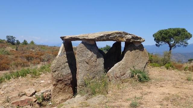 Dolmen de les Ruïnes (principi del III mil·lenni aC.). Sepulcre megalític de corredor amb cambra rectangular llarga i passadís estret cavalcat; les seves dimensions internes són 2,15 m de longitud, 1,4 m d’amplada, 1,4 m d’alçada. No consta que hi hagués restes d’enllosat. L’accés a la cambra era per un corredor de lloses, bastit en un suau pendent, format probablement per tres lloses a cada costat, de les quals se’n conserven només dues. El túmul només es conserva en part, en especial als dos costats i al darrera del dolmen. Era circular amb un diàmetre d’uns 7 o 8 m, una mica en contrafort frontal format per blocs de gneis, de quars i de terra. Al sector nord-est s’observa un anell de contenció extern format per grans blocs ajaguts (base d’un mur de pedra seca) que formen un semicercle. Els gravats que s’observen dins i fora d’algunes lloses són tots fets per acció de l’erosió natural.