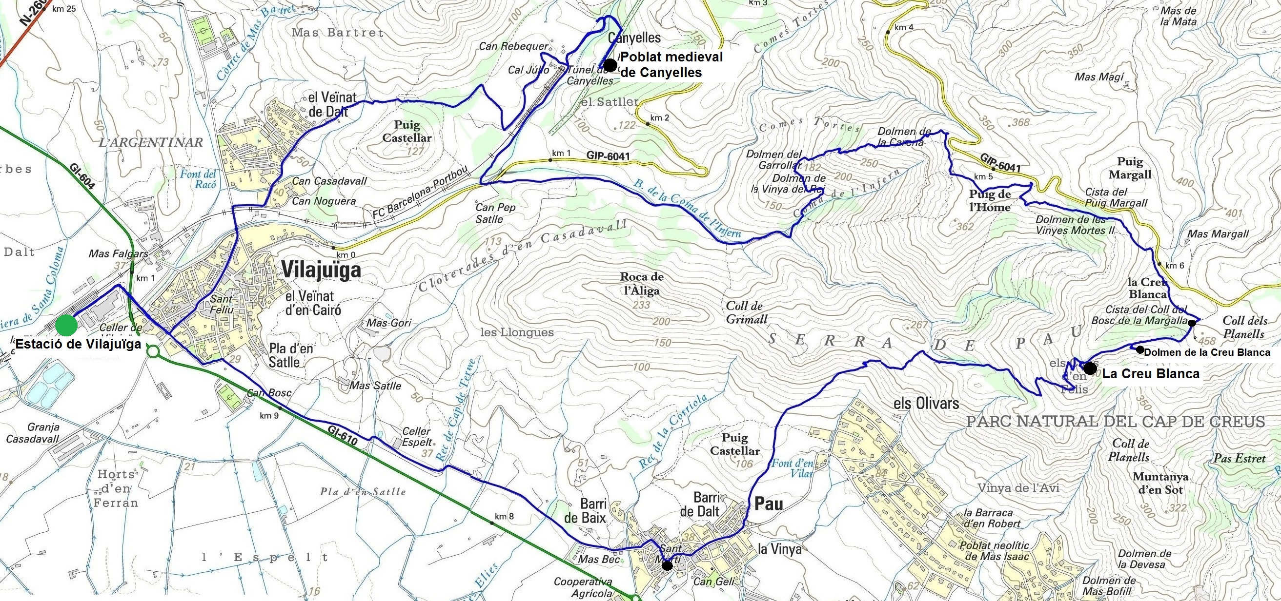 - Estació de sortida/arribada: Vilajuïga (Regionals)