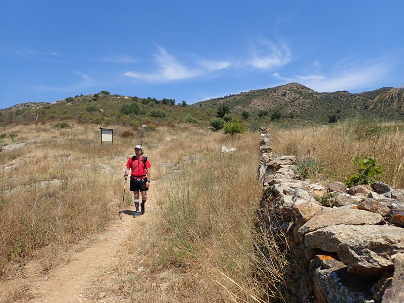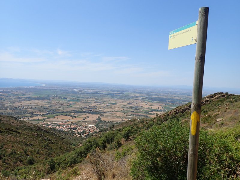 Poc després de passar pel dolmen del coll de la Margalla assolim el coll del mateix nom. En aquest punt hem d’agafar l’ample camí a la dreta que ràpidament ens oferirà unes grans panoràmiques del Golf de Roses, amb el poble de Pau, la nostra destinació, just als nostres peus. La carrerada per la que transitem segueix el Camí de Sant Jaume que ve del Monestir de Sant Pere de Rodes en direcció a la plana.