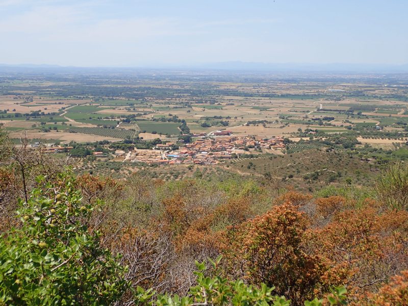 Del poblat retornem a la cruïlla de Cal Júlio (6/7 min.). Continuem ara pel camí que va paral·lel a les vies del tren a la dreta i la riera de Vilajuïga a l’esquerra entre grans exemplars d’alzines sureres.