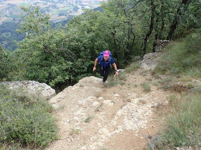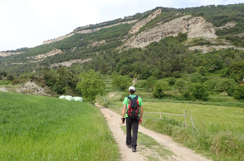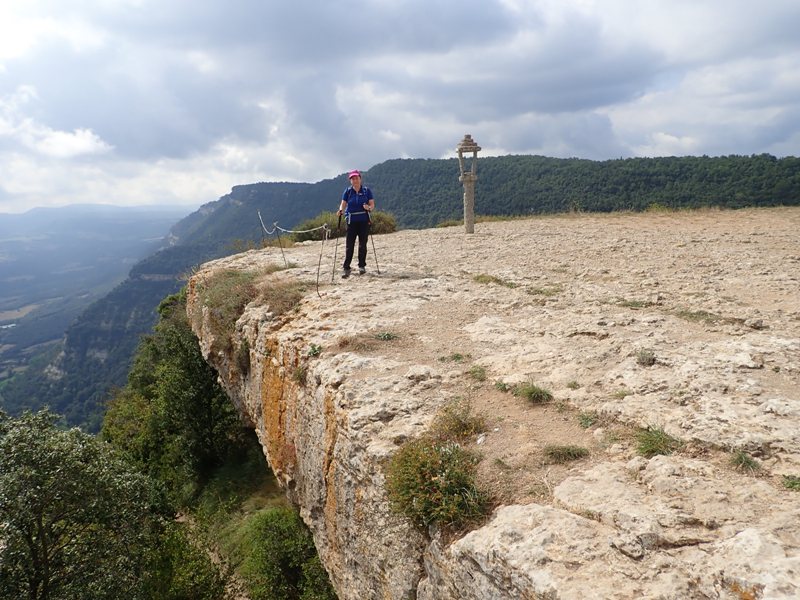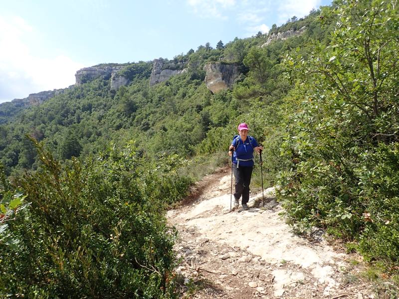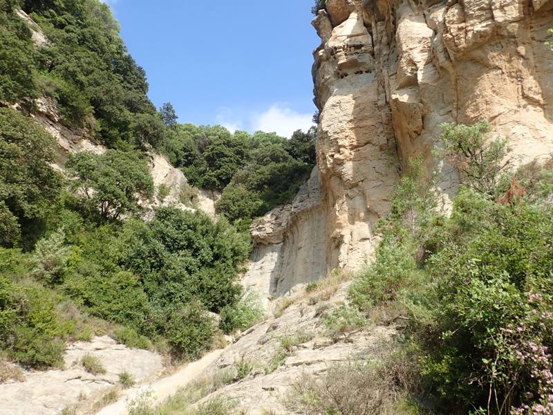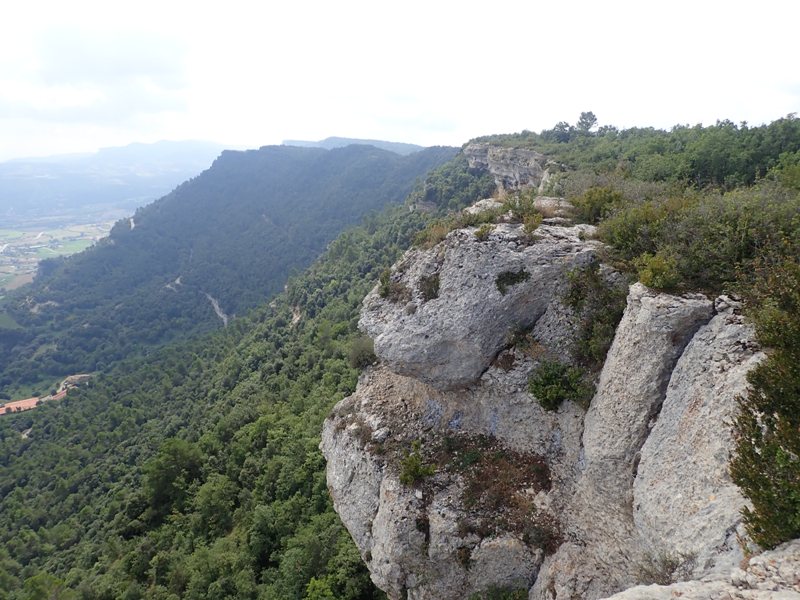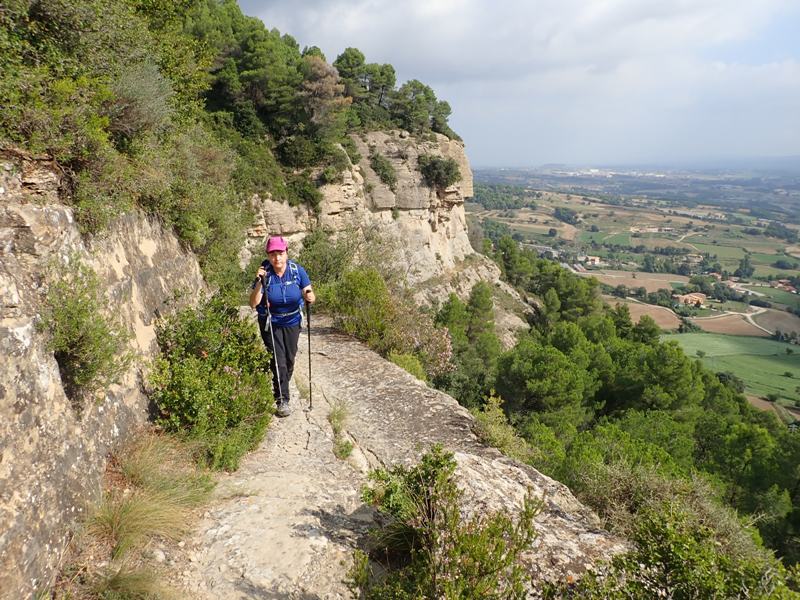 Comença ara potser la part més interessant de la caminada, un itinerari de prop de quatre quilòmetres que va paral·lel als penya-segats que s’eleven sobre la Baga de Viladecols, sempre amb àmplies vistes de la vall del Congost amb el Montseny al fons. De tant en tant ens podrem acostar al fil de la cinglera (compte) a fi de gaudir encara de millors panoràmiques.