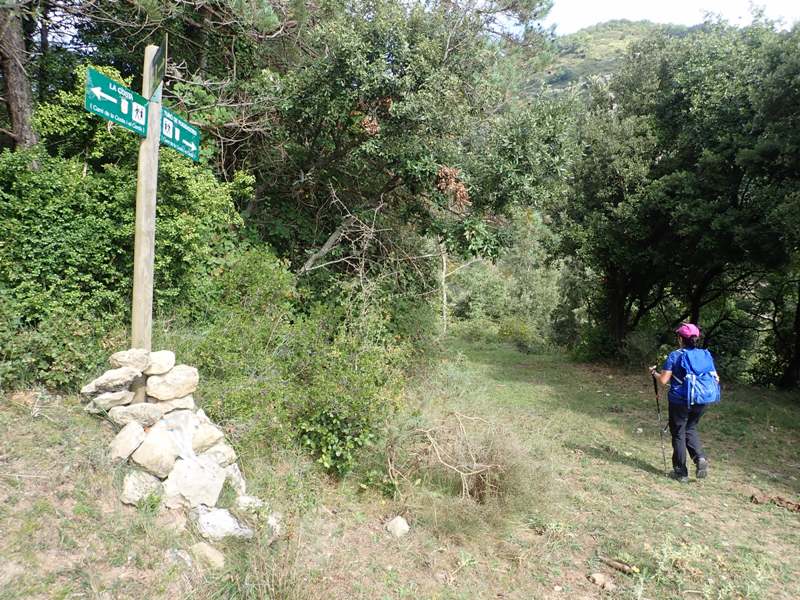 VARIANT: d’aquest punt surt vers al nord-est un camí que puja directament al cim del Puigsagordi pel seu vessant sud. La pujada implica pujar un fàcil tram de cinc esglaons de ferro.