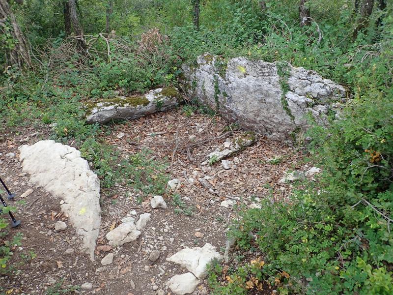 Al cap de 1,5 quilòmetres del cim i just passada una gran balconada sobre la vall del Congost, hem d’estar atents a no passar-nos de llarg del dolmen del Griutera, situat a mà esquerra del camí.