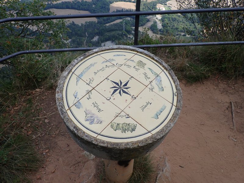 El Mirador Pirineu és a 60 metres al nord del primer i des d’aquí s’abasten vistes més àmplies que arriben fins al Canigó. Hi trobarem una rosa del vents que ens ajudarà a reconèixer el territori.