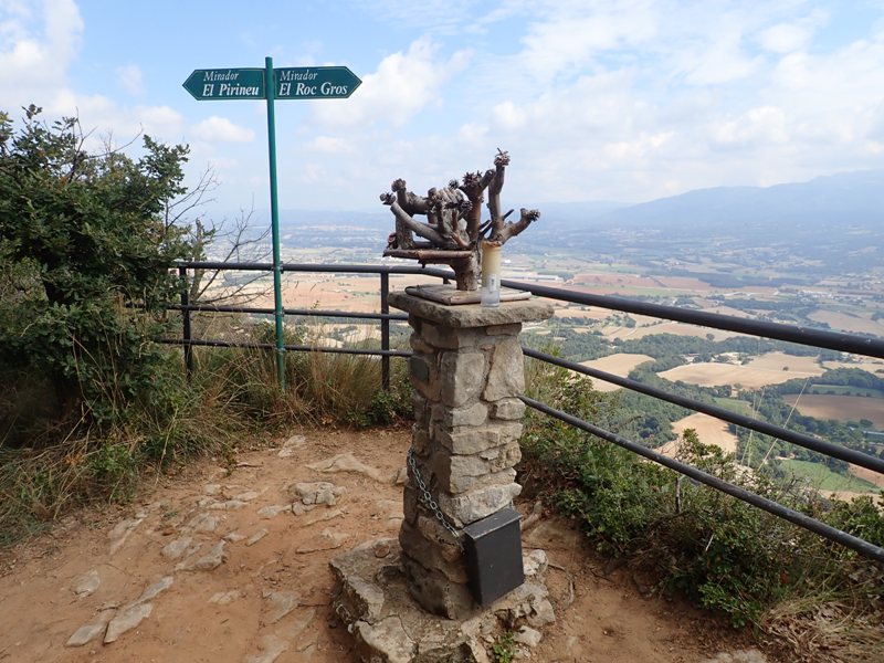 El primer mirador que assolim és el Mirador del Roc Gros, situat al mateix cim i des del qual es dominen els pobles de Balenyà i Centelles així com diversos cims del Montseny. Cada any pels volts de Nadal es fa una tradicional pujada per a col·locar-hi un pessebre.