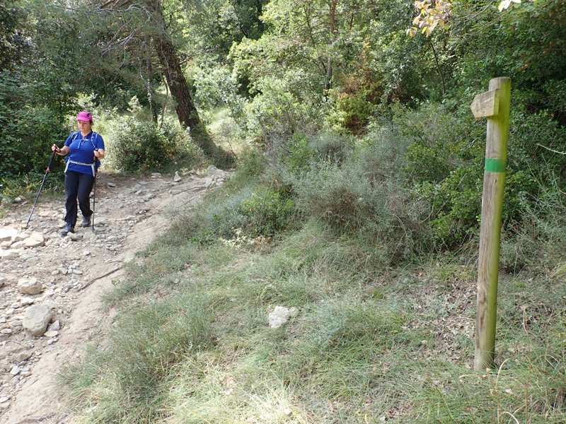 Cal desfer les nostres passes fins al proper coll de la Guàrdia i prendre el camí que passa pel Grau de la Guàrdia seguint a l’inrevés uns indicadors de fusta que trobarem a les diferents cruïlles. El sender passa per un tram de camí empedrat que segons algunes fonts podria pertànyer a l’antic camí romà que comunicava el Bages amb Osona.