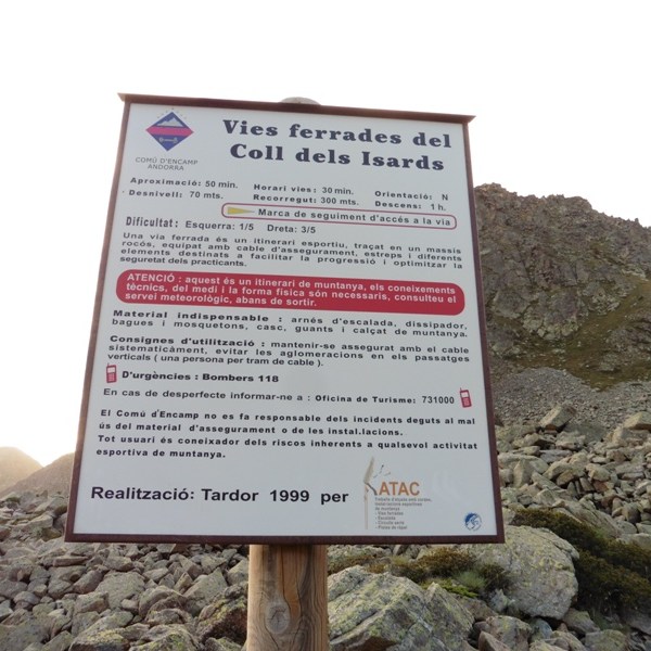 - Observacions: Camí equipat amb grapes que supera el torrent Tortuguer. Baixa dificultat, no cal material tècnic.
