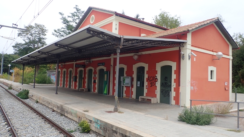 Una curta passejada sobre asfalt seguint les marques blanques i vermelles del GR-210 ens conduirà de nou fins a l’estació de tren.