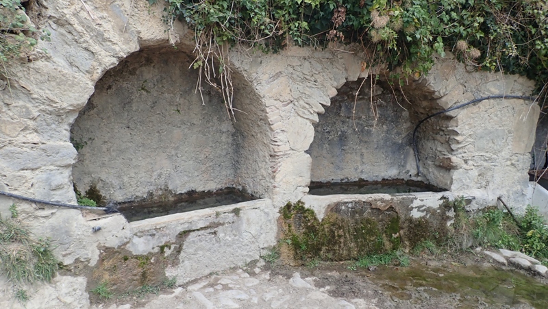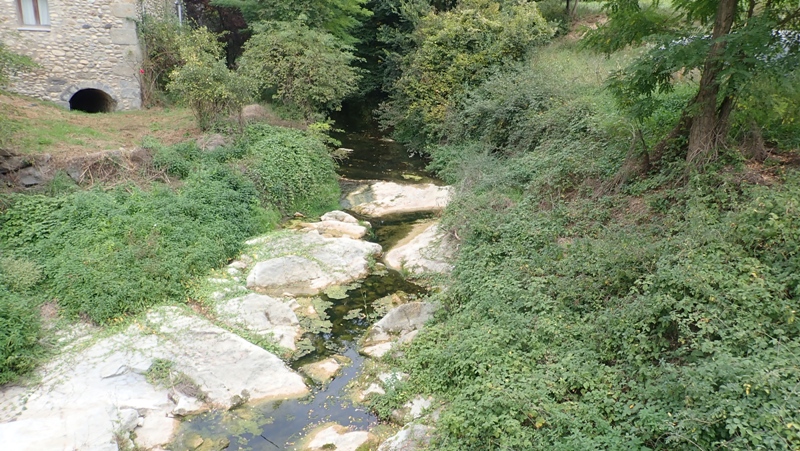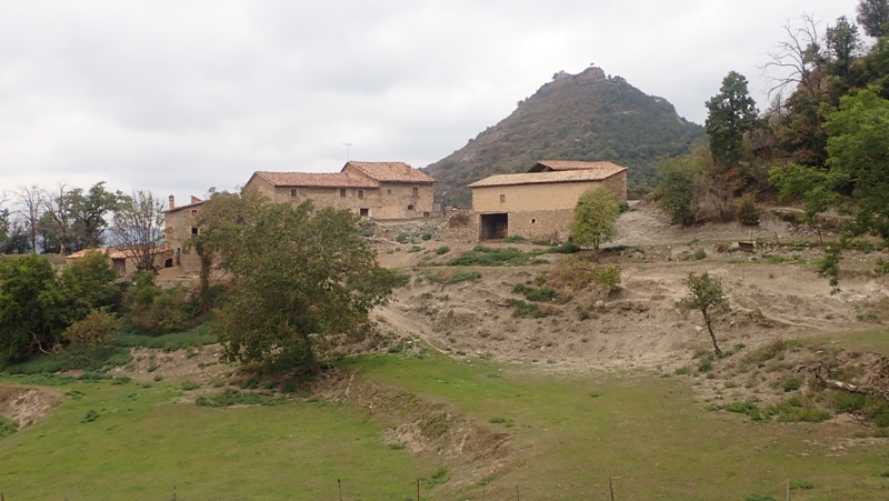 Del castell cal retornar de nou a l’esplanada anterior on hi ha la bassa a tocar de la masia del Pla, a fi de prendre el camí al castell de Montesquiu.
