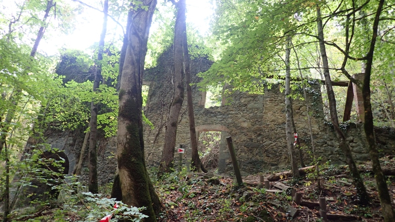 Seguim en tot moment les marques de pintura blanques i verdes del SL C-129 i del GR-151. La primera part recorrem un preciós sender entre un ombrívol bosc caducifoli format per roures i on també hi trobarem boix grèvol. Després de 5 minuts del replà trobarem a mà esquerra el que sembla una mina d’aigua, tancada amb porta de ferro.