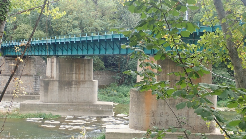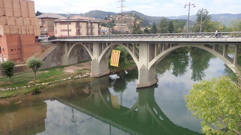 Seguim les marques de GR que ens porten a través del Pg. de la Verneda, on hi ha la font de Sant Jordi (1985), anomenat així per l’antiga verneda que aquí existia fins el 1940, quan una gran riuada el va fer desaparèixer. Passem sota l’interessant Pont del Ferrocarril construït el 1879 per la Sociedad Española de Construcciones Galindo, de Bilbao, reformat de forma important el 1930. Si ens fixem en les quatre columnes que el sostenen notarem que les dues centrals són de formigó enlloc de pedra, i és que van haver de ser reconstruïdes després que les tombés una gran crescuda del Ter (potser la de 1940?).