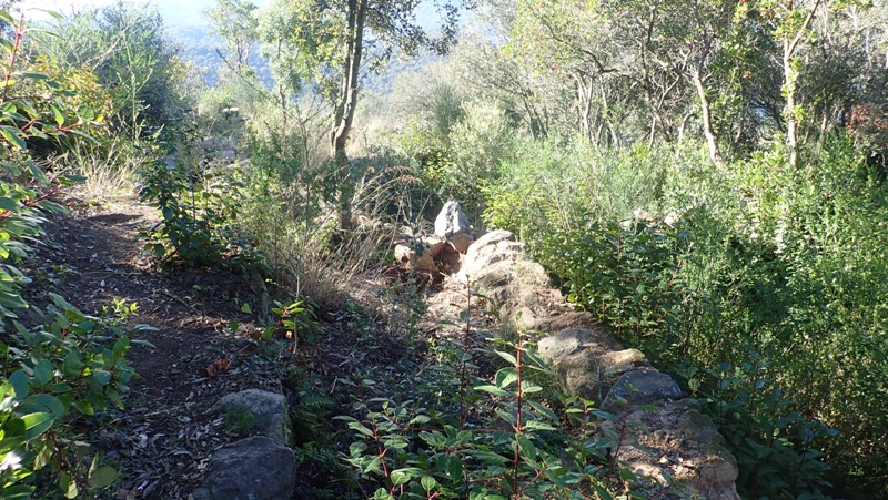 De la font cal seguir vers el sud-oest pel tancat senderó que va guanyant alçada pel vessant nord del turó de Galceran. Si ens fixem pels vorals podrem veure la planta d’on pren el nom la muntanya, una planta de fàcil reconeixement gràcies a les boles vermelles que té fixades a les fulles.