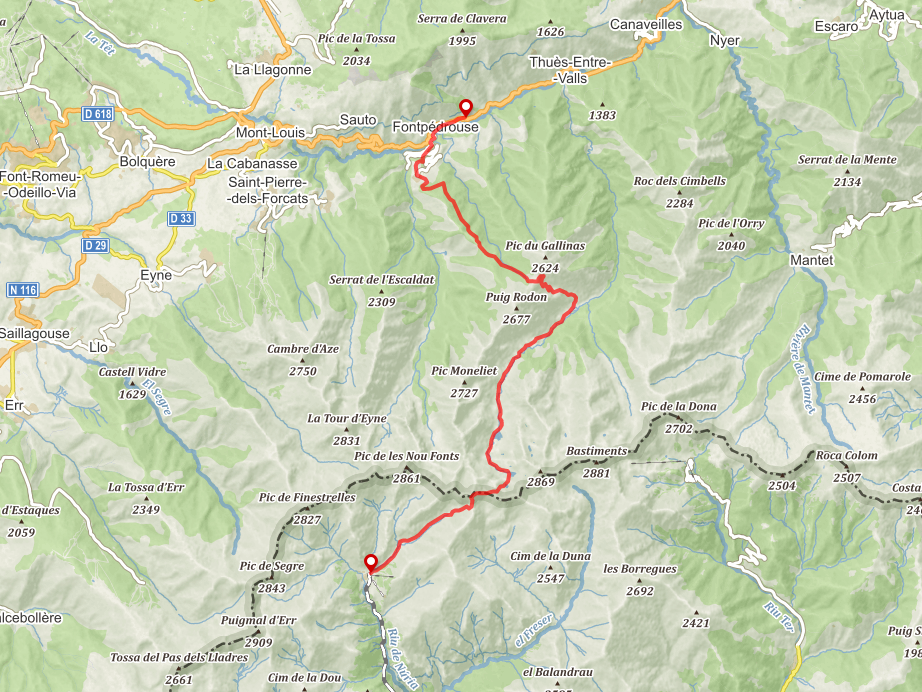 - Obs. Implica pujar al Puigmal, on realment comença la travessa. Només apta des de finals de primavera a finals d’estiu, quan la ruta està lliure de neu.