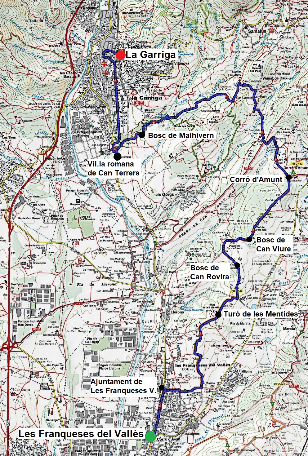 1. PR C-142: ruta verda de les Franqueses. ruta circular que surt de Les Franqueses i que vam seguir íntegrament a la Ruta ST219 Ruta Verda de Les Franqueses del Vallès.