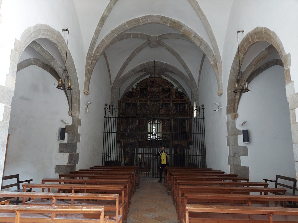 L’església forma una planta de creu llatina, d’una sola nau, amb entrada per migdia a través d’una portada de carreus de pedra i llinda plana; a sobre de la llinda hi ha un petita fornícula, protegida per un porxo cobert amb volta de mig punt. La nau es cobreix amb tres voltes de creueria, separades per arcs faixons apuntats; els nervis de les voltes es tanquen amb claus esculpides.