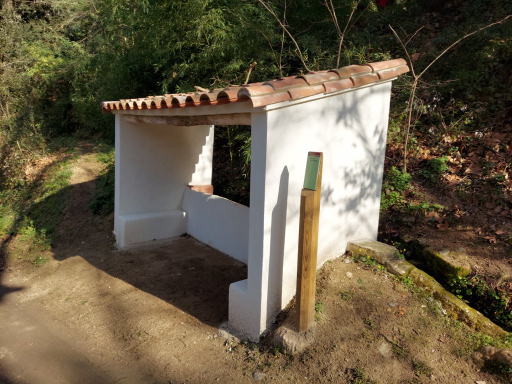 Safareig de Cases Blanques: Petit safareig amb un sostre de teula sense bassa, aprofita l’aigua d’un canal.