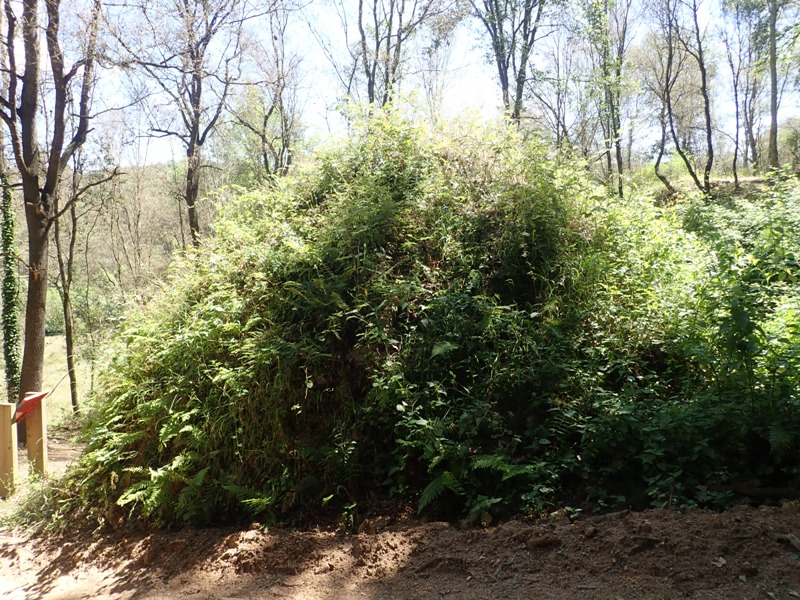 Plataneda: Tot just es creua la carretera a Olzinelles pel pont de Ca l’Alzina Vell entrem en una zona on el bosc de ribera ha estat substituït per una plantació de plàtans, arbre de creixement ràpid però de fusta de mala qualitat.