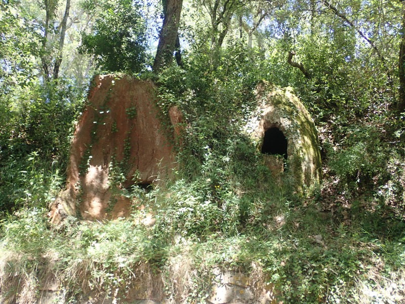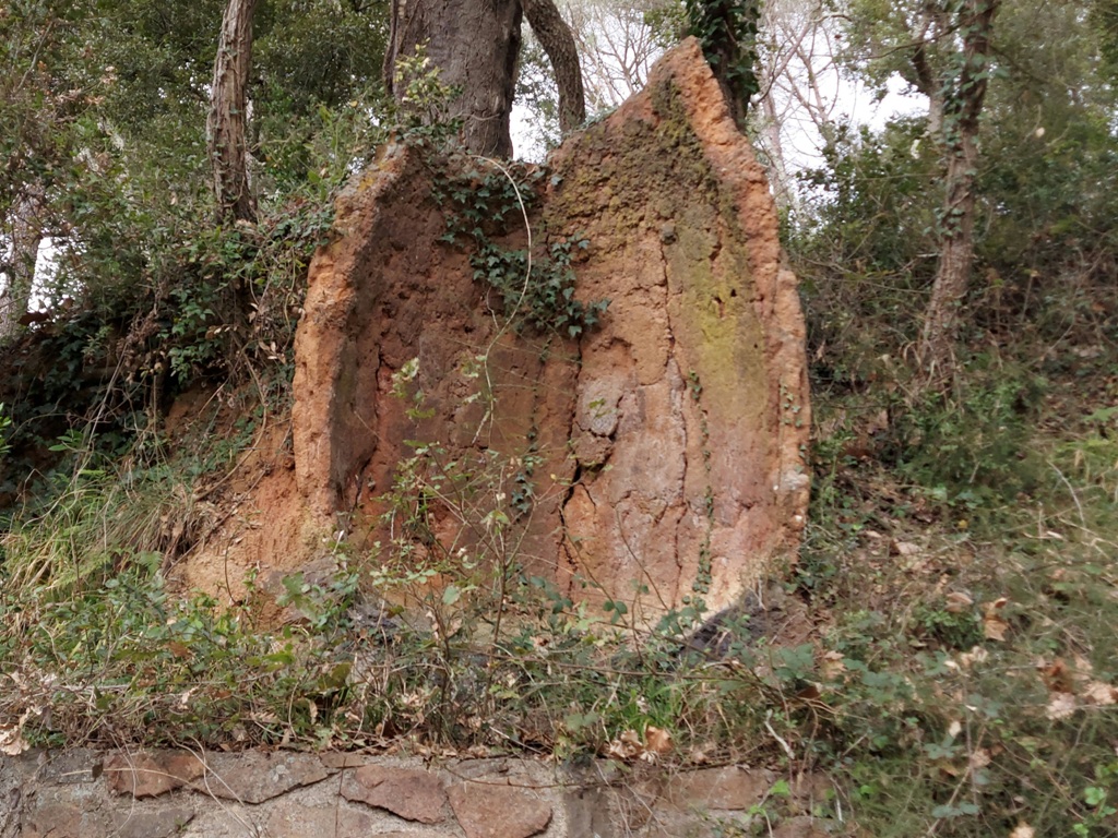Forns de Pega de Can Valls: Es tracta de tres grans recipients de ceràmica oval datats al segle IX-X, d’uns 2 metres d’alçada cadascun, un al costat de l’altre. Un dels forns es conserva pràcticament sencer. La pega, substància viscosa i fosca, s’obtenia mitjançant la cocció lenta de soques de pins i alzines, i s’utilitzava com a combustible per l’enllumenat públic i per impermeabilitzar vaixells i recipients. (Extret del plafó informatiu)