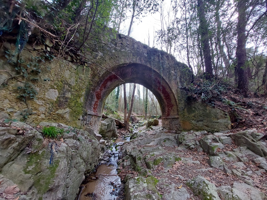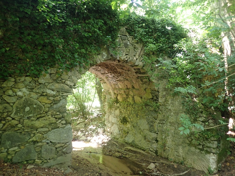 Aqüeducte de Can Valls: Canalització que condueix aigua d’una mina propera fins a la bassa de l’Aranyal.