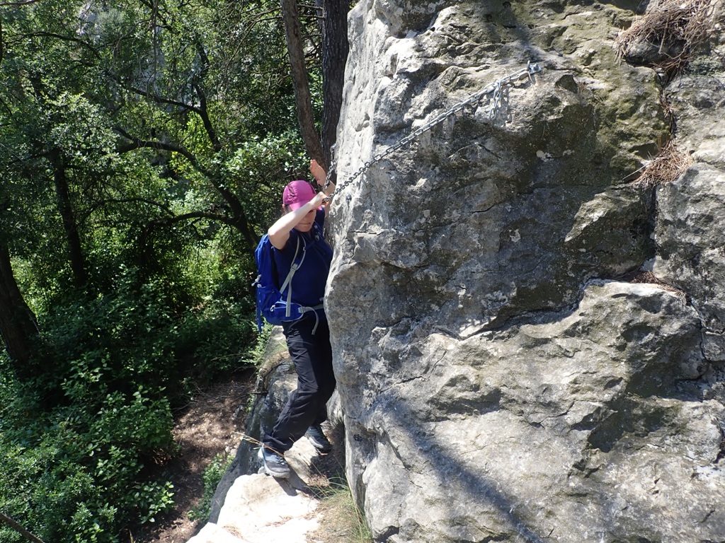 El camí no és aeri, només el Pas de la Guineu, al final del recorregut, és exposat. Cal una mica de força de braços al Saltant de la Madrona i al Cau del Degotall. A aquest últim cal anar amb compte si està humit, que atenent al nom, ja podeu imaginar que normalment ho estarà.