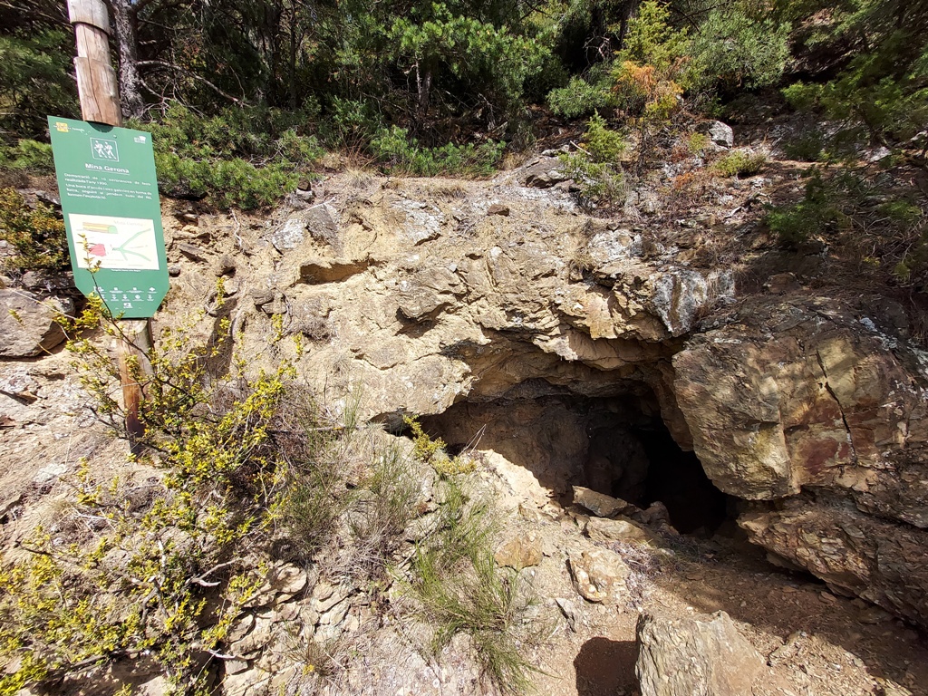 Mina Gerona: La més interessant. Mina de ferro de l’any 1900. Després de una primera galeria, aquesta es divideix en tres braços. El de més a l’esquerra és el de més extensió (26 metres).