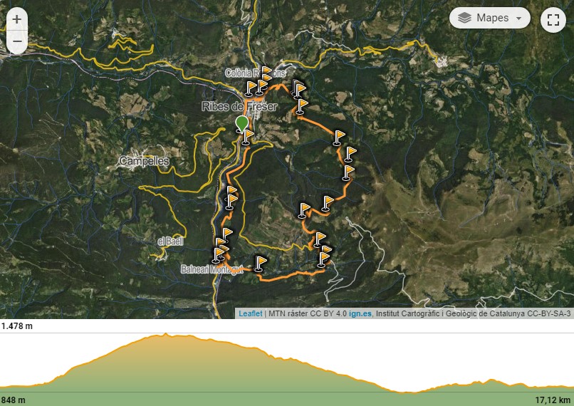 - Distància/durada: 17,1 km / 4h25 (sense aturades)