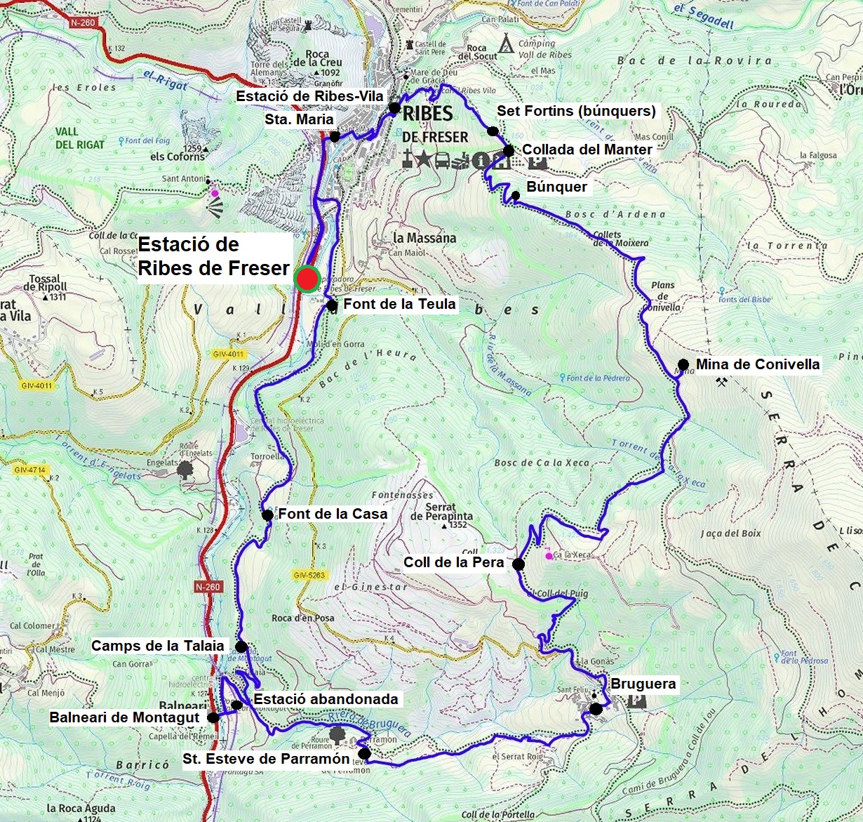 - Estació de sortida/arribada: Ribes de Freser (Rodalies)