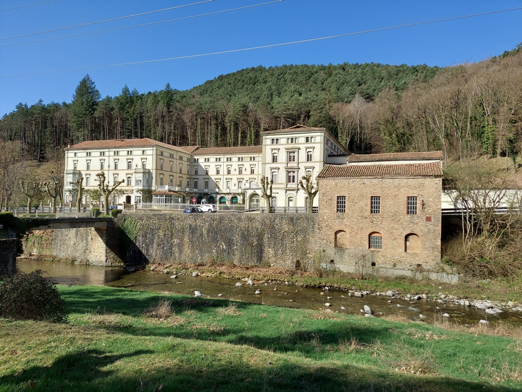 Hi ha referències que a principis del s. XVII en aquest mateix indret ja hi havia un allotjament dedicat al bany. El balneari actual s’aixeca dins del terme municipal de Campelles, l’edifici té forma de U, és d’estil vuitcentista i està format de tres pisos que acullen més de 100 habitacions. L’any 1870 es va construir una primera pensió, ampliada deu anys després amb les actuals ales nord i oest. L’ala sud es va reformar l’any 1914 amb estil modernista, estances com la sala de lectura, el teatre i la sala de ball encara ara es poden gaudir amb la seva decoració original. Malauradament l’establiment fa dècades no acull cap hoste, tot i que la família Montagut, propietària del recinte, encara hi ha algunes estades.