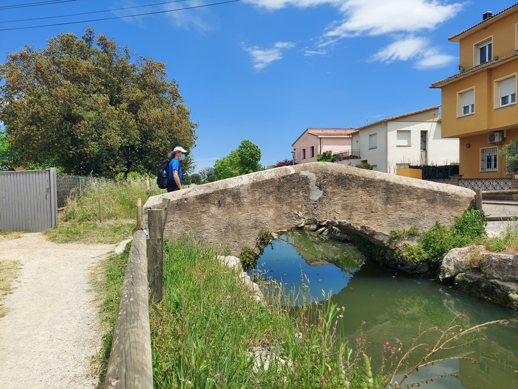 La Palanca (Bordils): Petit pont en un agradable entorn que permet creuar còmodament la riera de Sant Martí Vell. De seguida deixem enrere l’ombra per trobar-nos de nou caminant entre els camps de conreu del Pla de Mollet, amb les pollancredes que caracteritzen el Ban estenent-se cap al nord.