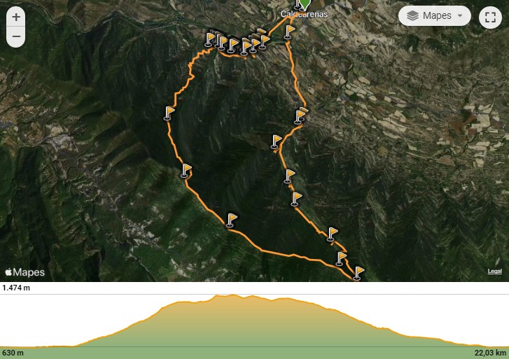 La travessa és dura, amb aproximadament 22 km de distància i 1.000 m de desnivell acumulat (700 m dels quals seguits). Tot i així és de fàcil seguiment gràcies a la bona senyalització, especialment si la fem en la direcció de la proposta. Durant la caminada trobarem indicadors verticals amb la direcció cap als següents punts d’interès i fins i tot amb la distància total que queda fins a Caldearenas. Així mateix, si estem atents, i encara existeixen, trobarem petits marcadors als 10 i 20 quilòmetres.