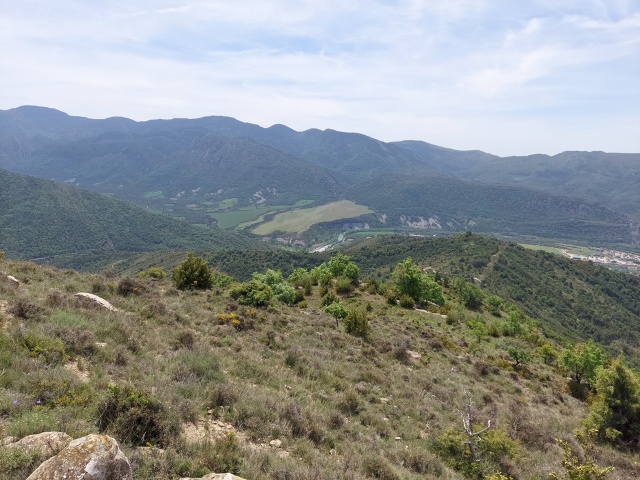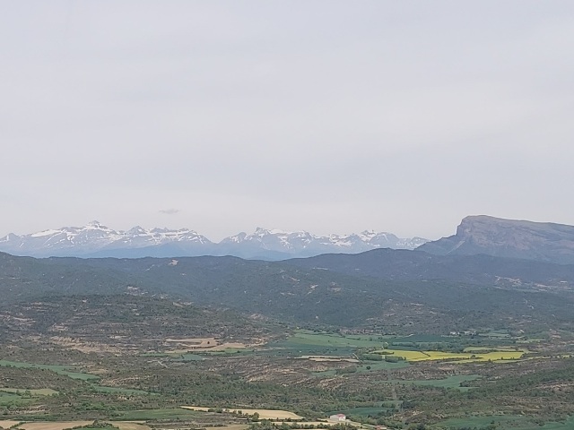 La travessa recorre bona part de la carena (plana) de la serra de Sta. Isabel. Durant aquest tram de prop de 1.500 metres caminarem sense seguir cap sender clar, sinó que seguirem camins de ramat que ens podem fer dubtar del camí a seguir. Les vistes al sud de la serra de Loarre i a estones al nord dels Pirineus, faran passar aquests metres distrets, però amb un ull al gps!